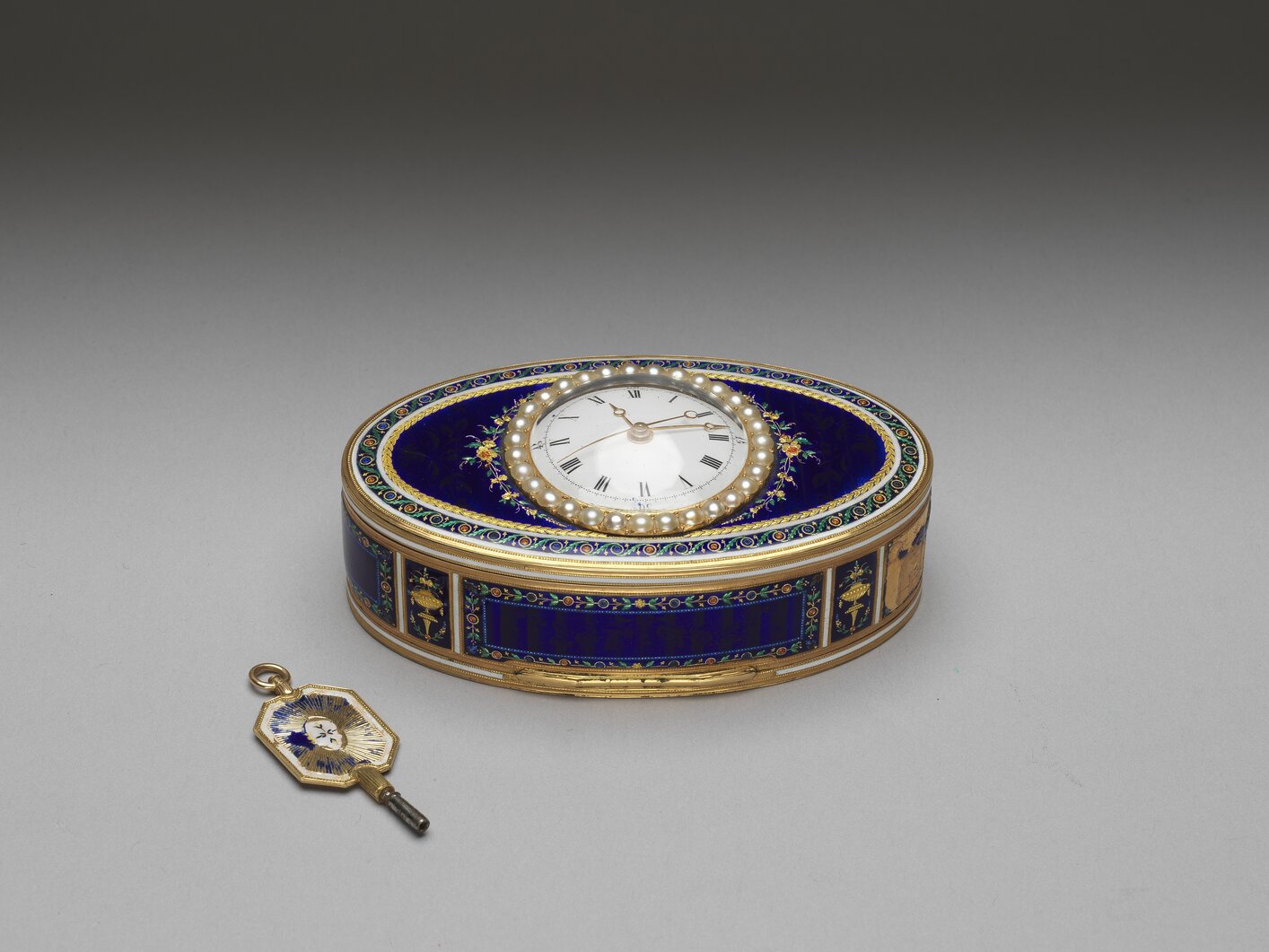 銅胎琺瑯嵌珠鑲錶鼻煙盒