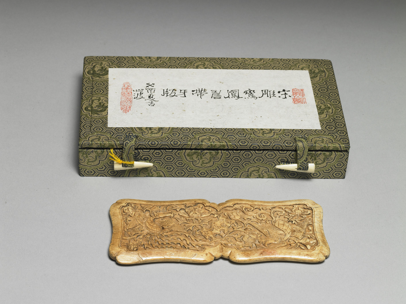 - Bone plaque with phoenix-and-cordon decoration