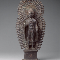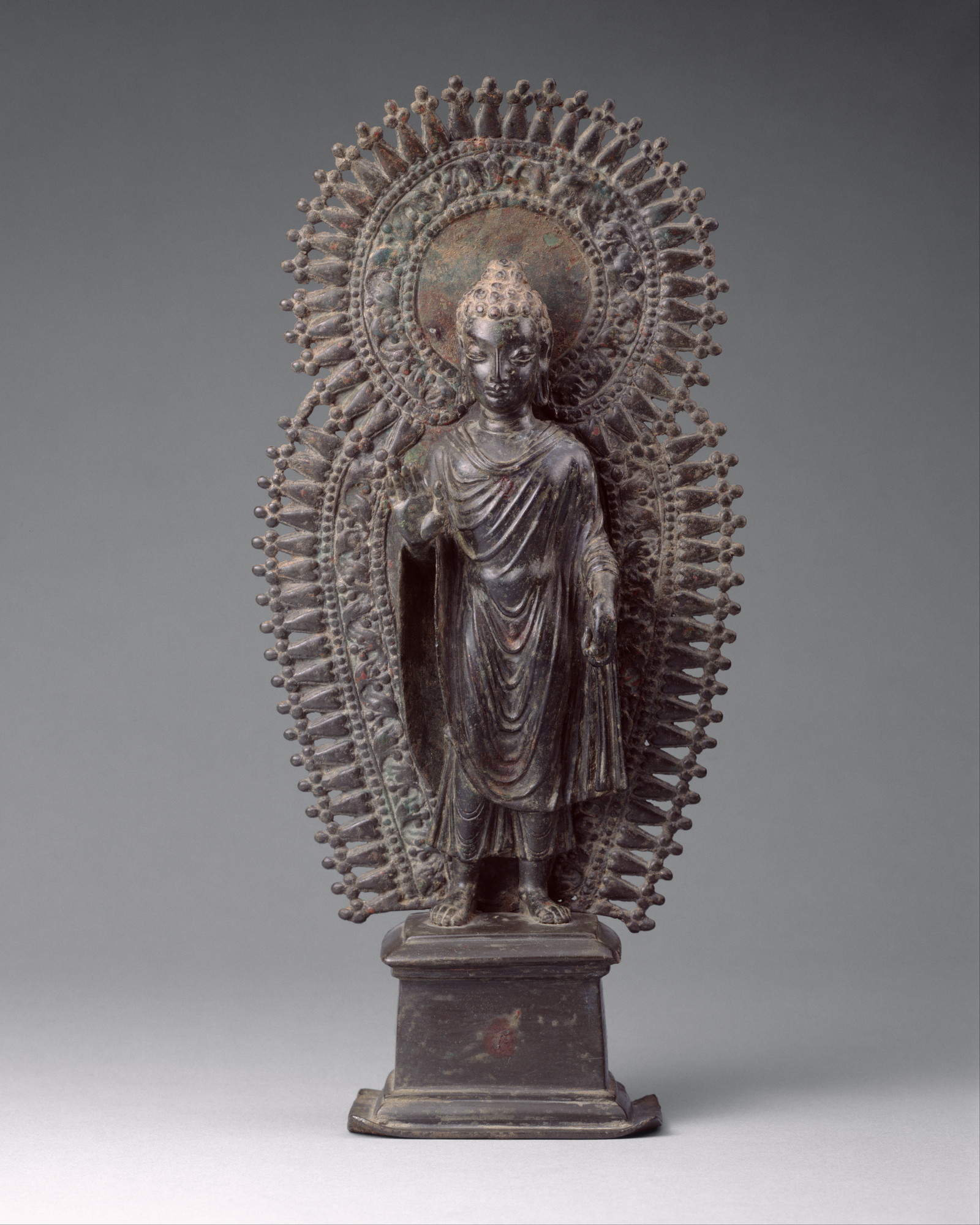 主題:Standing Buddha with Radiate Combined Halo; ca. late 6th century; Pakistan (ancient region of Gandhara)