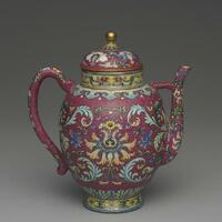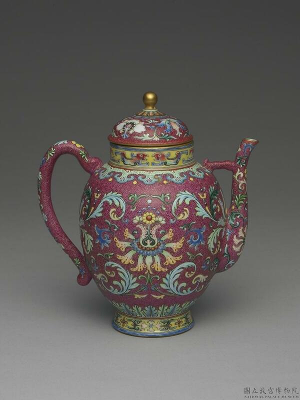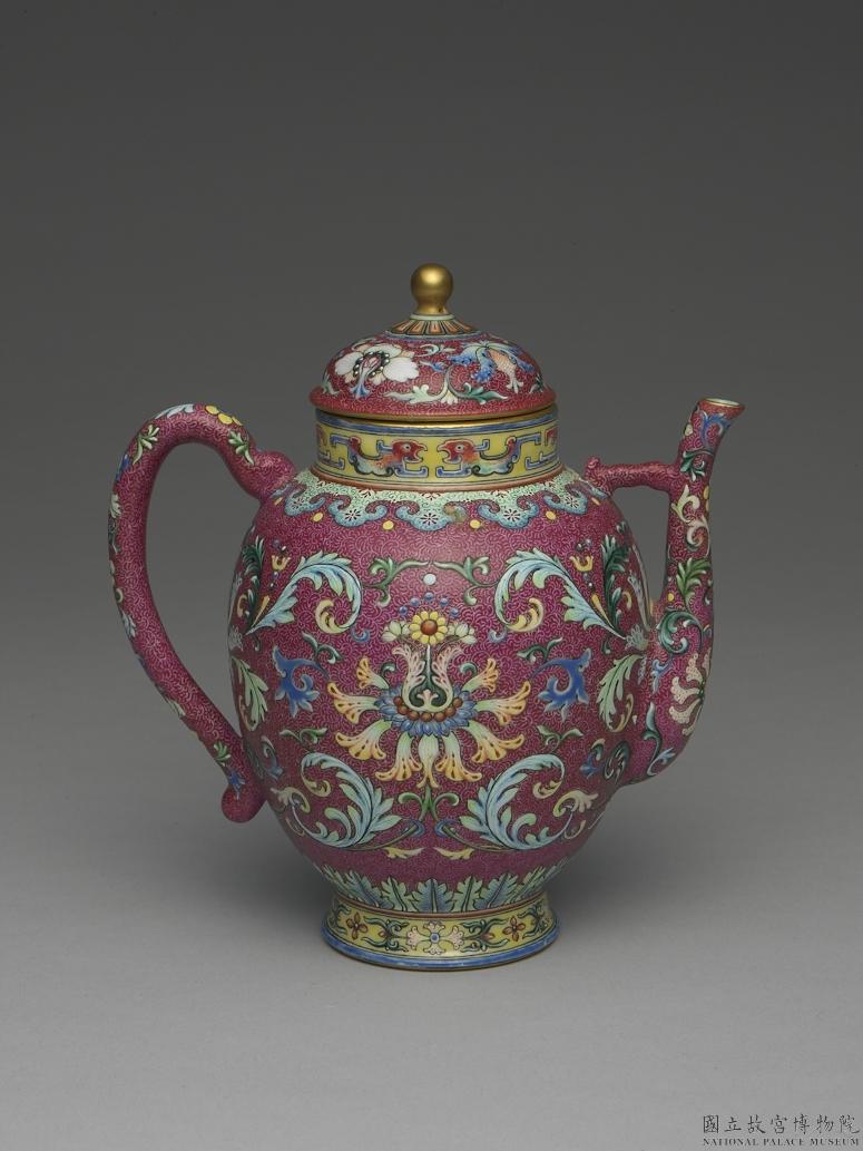 洋彩番蓮紋紅地茶壺。國立故宮博物院,台北,CC BY 4.0 @ www.npm.gov.tw
