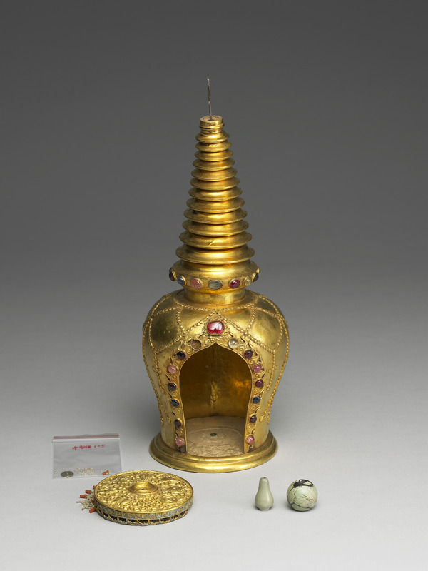 清 雜銅鎏金鑲料石藏式塔(中雜000105N000000000)