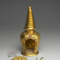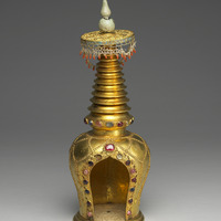 Tibetan-type gilt pagoda with inlays of precious material