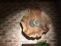 明心 作品「明心」以天然木材為底,以禪意書法呈現核心主題。木紋自然流動,透露歲月無言的智慧與寧靜。中央書法揮灑自如,筆觸簡約而蘊藏深意,象徵人心本具的清明與自在。光影交錯間,紅磚牆的質樸襯托出木材與文字的溫潤與質感,彷彿提醒觀看者,明心見性不假外求,而是回歸內心的覺察與本真,體悟自性清淨與萬物一體的禪意,達到內外和諧的境界。