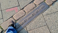 一墻之隔 照片攝於德國柏林,腳下所踩的鐵牌刻著「BERLINER MAUER 1961–1989」,標示著柏林圍牆曾經矗立的界線。這道牆曾分割東西德,是冷戰時期極權與自由對立的象徵,無數家庭因此分離,無數生命因此失落。如今圍牆雖已倒塌,其殘跡卻提醒世人:自由得來不易,極權的陰影仍需警惕。當人們自由地跨越這條歷史的痕跡,不只是腳步,更是一種對和平與人權的深切反思與珍惜,一種從壓迫走向希望的象徵行動。