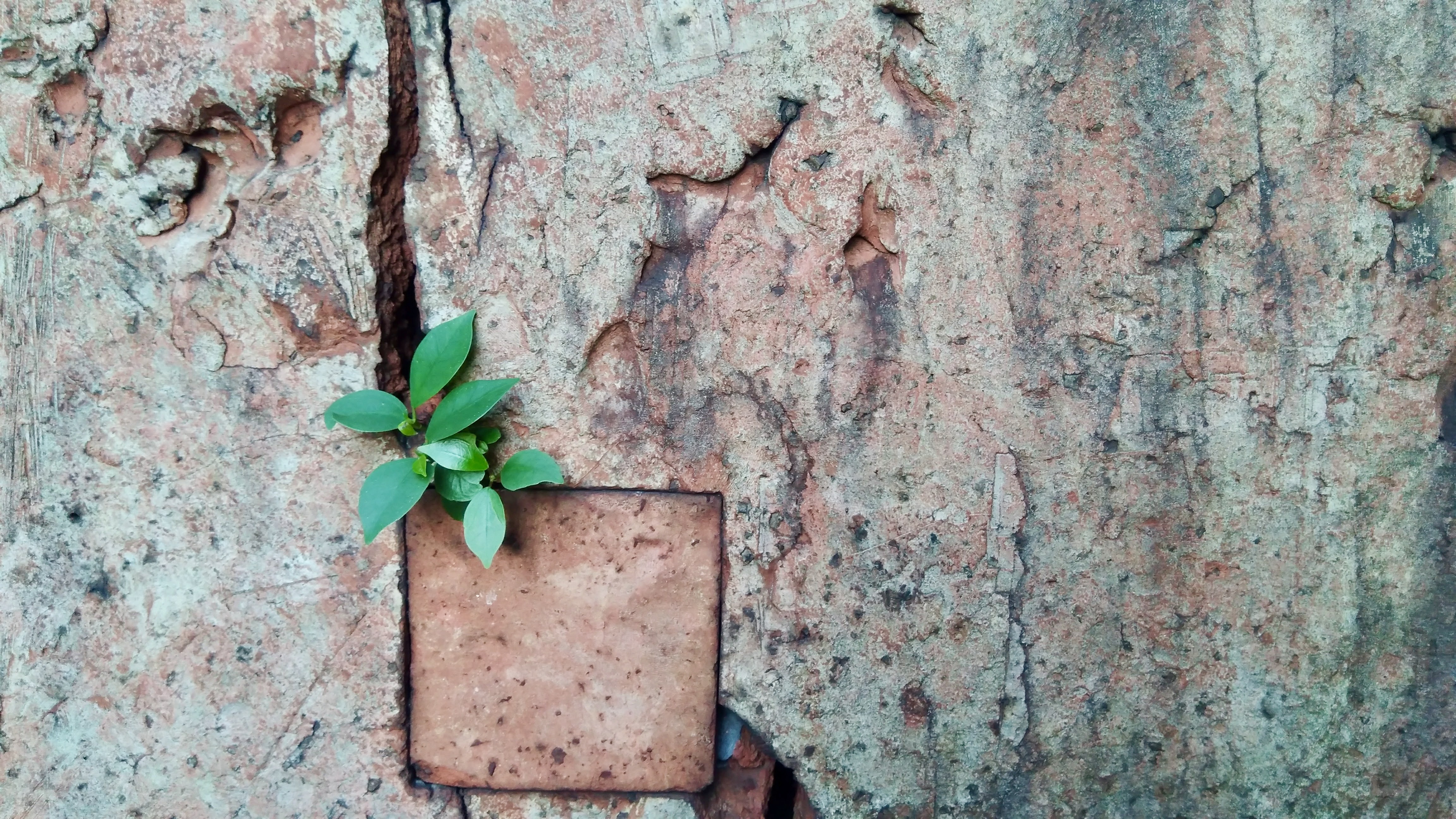 - 在粗糙而龜裂的牆面縫隙中,一株翠綠的新芽堅韌地冒出,象徵生命在困境中所展現的頑強與自在。斑駁的牆壁承載歲月痕跡,原本冰冷而堅硬,卻因這抹綠意而顯得溫柔且充滿生機。這幅攝於台北藝術大學的影像,以細膩的視角傳達了生命的無限可能與堅韌不拔,提醒人們:即便環境再艱難,只要心念自在,生命依然能夠從困境中生長出堅強與美好,綻放獨特的光彩。