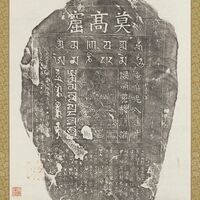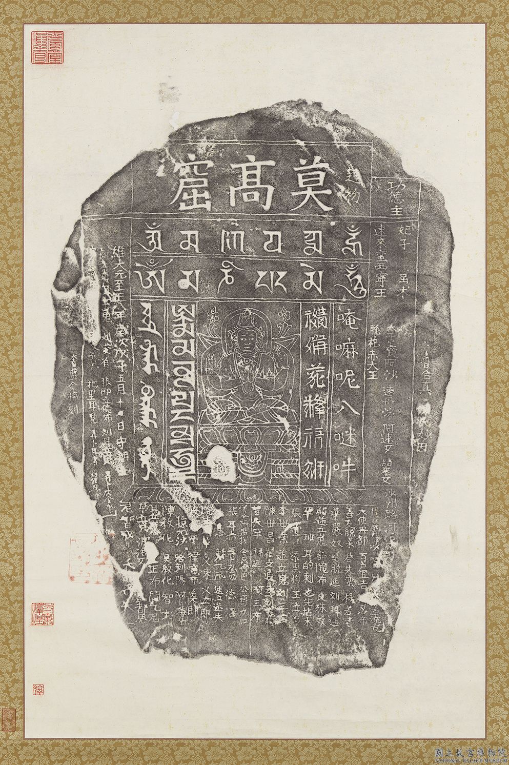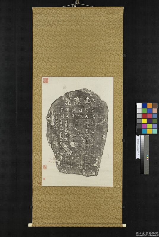 敦煌莫高窟六字明咒碣墨拓本 軸。國立故宮博物院,台北,CC BY 4.0 @ www.npm.gov.tw