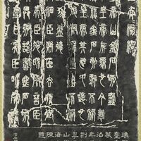 根據陳澧(西元一八一○-一八八二年)題記,同治七年(一八六八)潘石朋摹刻琅琊臺刻石於粵秀山學海堂,此軸乃其拓本。 秦始皇於始皇二十八年(西元前二一八)巡行天下,登琅琊臺,由丞相李斯書以小篆記其功德,於二世元年刻石,為存世秦篆代表作品。書法莊重肅穆、氣勢雄渾。與原拓本相較,雖為摹刻本,然結體筆法仍不失渾厚,足見摹刻於書法作品傳承之重要性。本件由陳之藩先生捐贈。