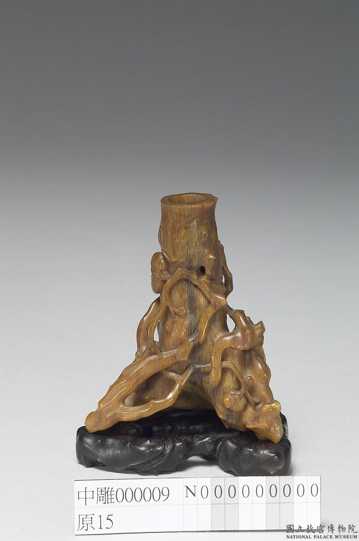 〈清 十八世紀 雕犀角梅樹香插〉,國立故宮博物院藏。圖版取自《器物典藏資料檢索系統》:https://digitalarchive.npm.gov.tw/Antique/Content?uid=18528&Dept=U(檢索日期:2022年6月6日)。