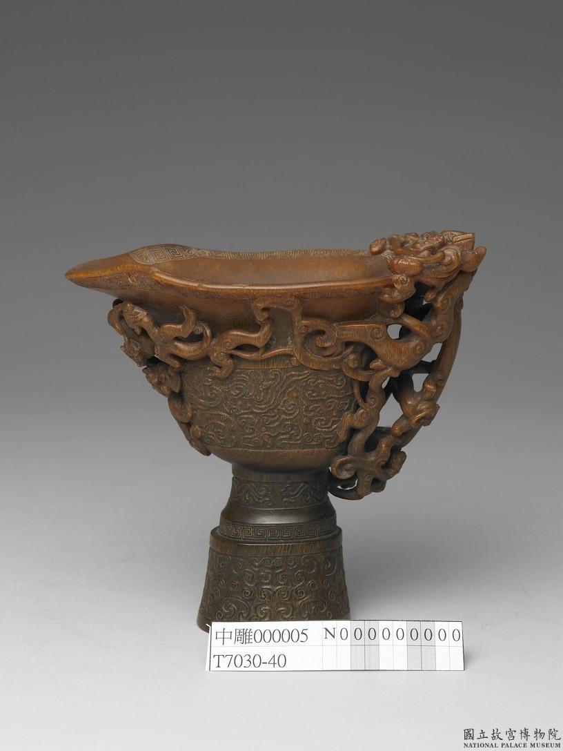 主題:器物類犀角。關鍵字:螭龍杯