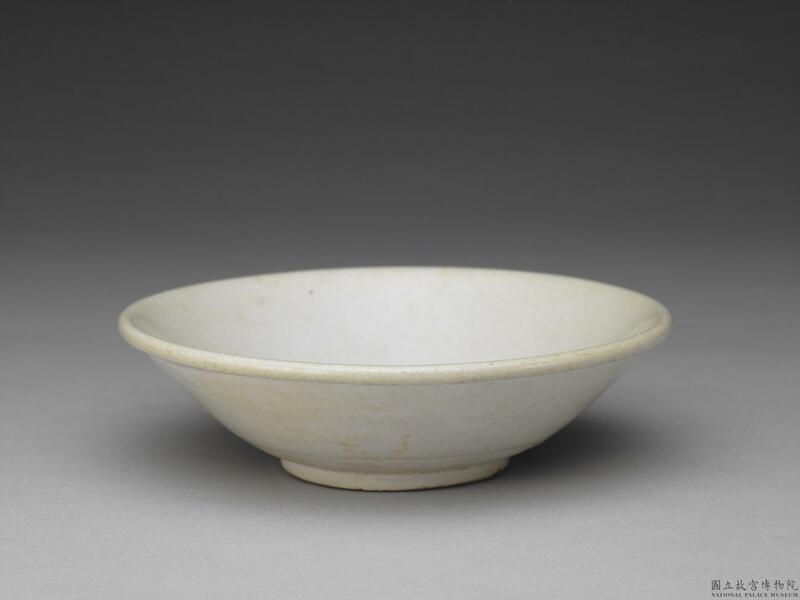 - 敞口捲唇,斜壁,淺腹,玉璧形底足。內壁滿施白釉,外壁掛釉不及底,底部無釉。白釉瑩潤,聚釉處泛青,胎質細膩堅緻。敞口、玉璧足的淺碗為唐代中晚期典型茶碗形制,最有名者莫過於越窯青瓷玉璧足茶碗,及邢窯玉璧足茶碗,兩窯皆為陸羽《茶經》所載。雖然《茶經》以越窯青瓷茶碗為尚,但首都長安或洛陽墓葬或寺院遺址所出土者,仍以邢窯白釉茶碗為多。同類型茶碗或「盈」字款邢窯白釉玉璧足茶碗,長安西明寺、洛陽白居易邸宅等遺址均有發現。