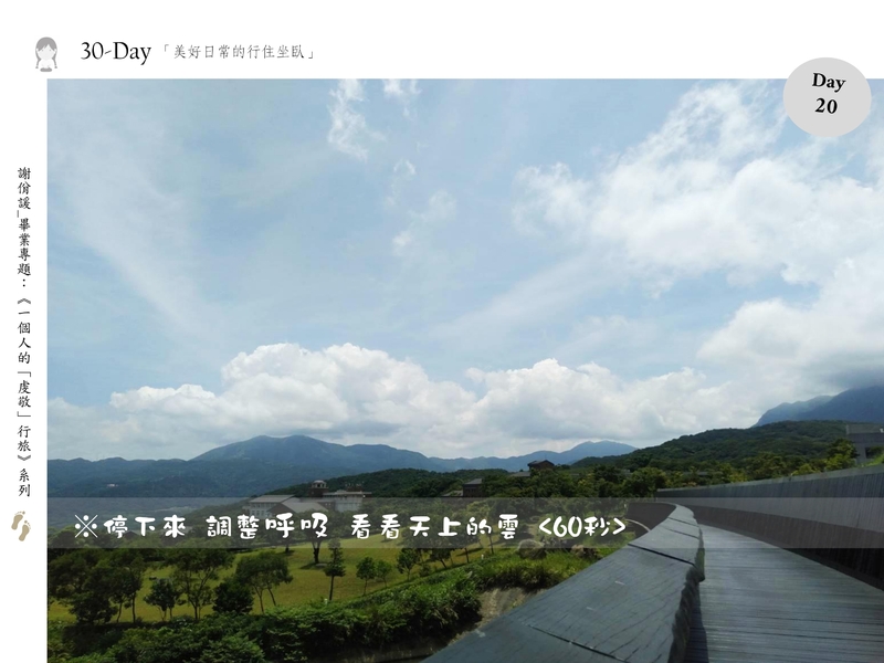 停下來 調整呼吸 看看天上的雲 <60秒>