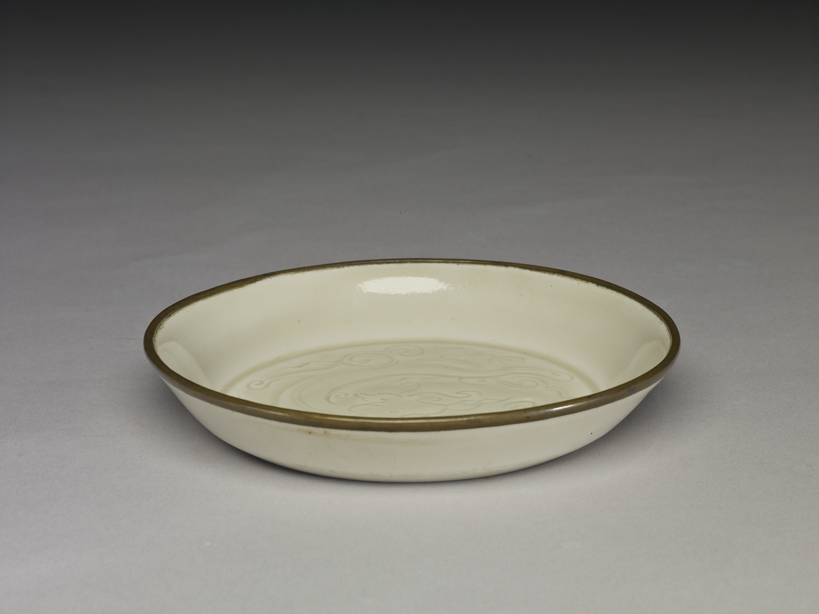 - Dish with incised chi-dragon pattern in white glaze, Ding ware